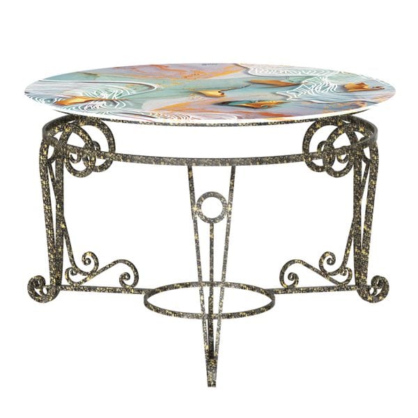 Bàn kiếng mỹ nghệ Luxury với mặt kính cường lực tròn vân đá sáng bóng, chống trầy xước, giúp khắc phục nỗi lo bàn nhanh cũ kỹ, khó vệ sinh. Khung chân sắt uốn cong mỹ nghệ tinh xảo vừa chắc chắn vừa nâng tầm thẩm mỹ, giải quyết tình trạng bàn đơn điệu, thiếu điểm nhấn trong không gian.