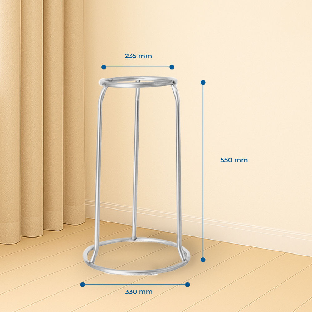 Chân đựng xô đá có khung tròn vững chắc, giữ thăng bằng tốt cho nhiều loại xô đá. Chất liệu inox sáng bóng, không gỉ sét, bền bỉ theo thời gian và dễ lau chùi sau khi sử dụng, đảm bảo sạch sẽ, đồng thời chiều cao vừa tầm giúp lấy đá tiện lợi, không cần cúi người nhiều. Kiểu dáng tối giản, hiện đại, phù hợp cho mọi không gian phục vụ từ gia đình đến nhà hàng, quán café
