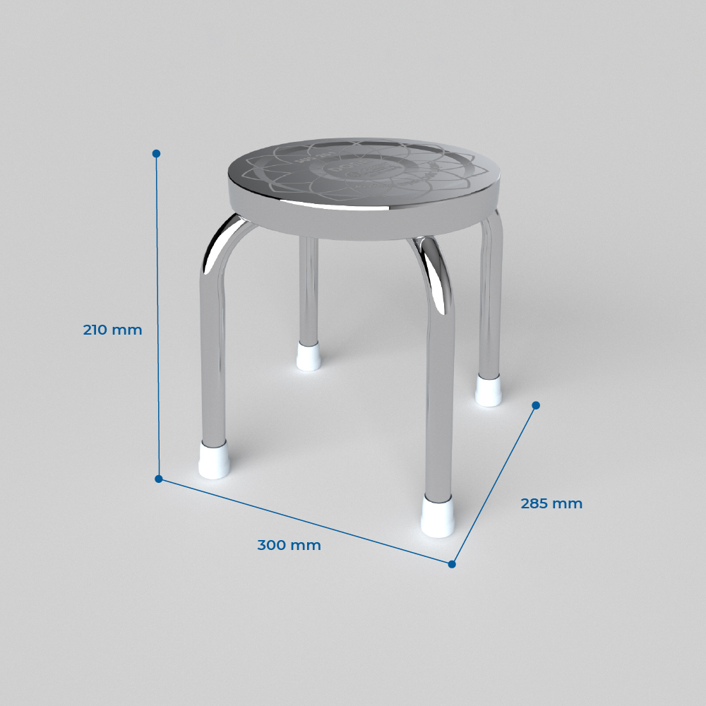 Ghế Đẩu Inox Dona S có khung chân inox sáng bóng, chịu lực tốt, chống gỉ sét, giải quyết nỗi lo chân mỏng dễ gãy hay inox thừa gây trầy tay. Mặt ghế đường kính 28cm, khắc hoa văn laser bền đẹp, không bong tróc, tạo điểm nhấn tinh tế, phù hợp nhà bếp, nhà trọ, trong khi chân đế có nút nhựa chống trượt, bảo vệ sàn và tăng độ bám chắc
