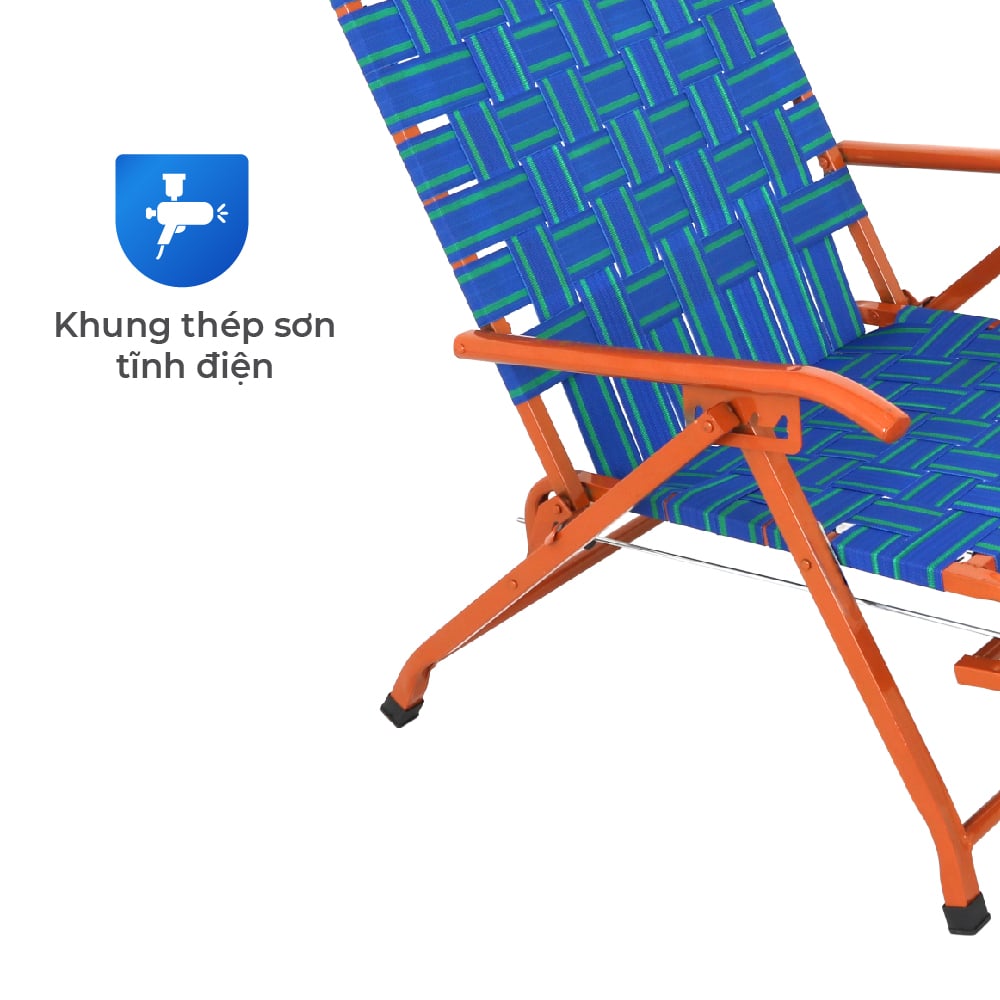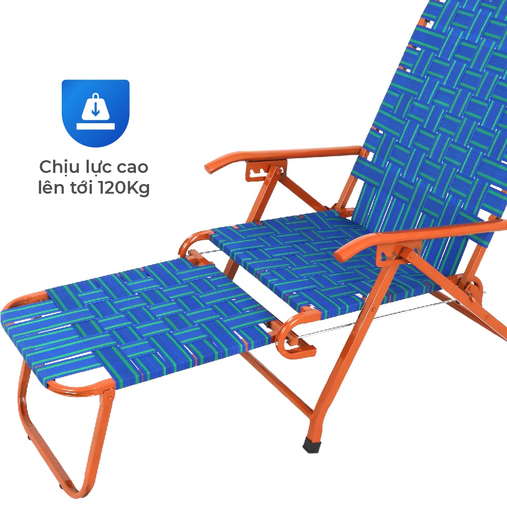 - Mặt ghế và lưng tựa đan dây dù bản lớn, có độ đàn hồi cao, thoáng khí, ngồi lâu không hầm nóng, không gây bí lưng - Thiết kế ngả lưng sâu kết hợp phần gác chân dài, tạo tư thế nằm thư giãn hoàn hảo, giảm áp lực vùng hông và lưng dưới - Có thể gấp gọn linh hoạt, dễ dàng cất giữ hoặc mang theo. - Dây dù chắc chắn, bền bỉ, tạo cảm giác “ôm cơ thể” khi ngồi, dễ lau chùi, chống thấm, dùng trong ghế xếp thư giãn ngoài trời hay trong nhà đều phù hợp.