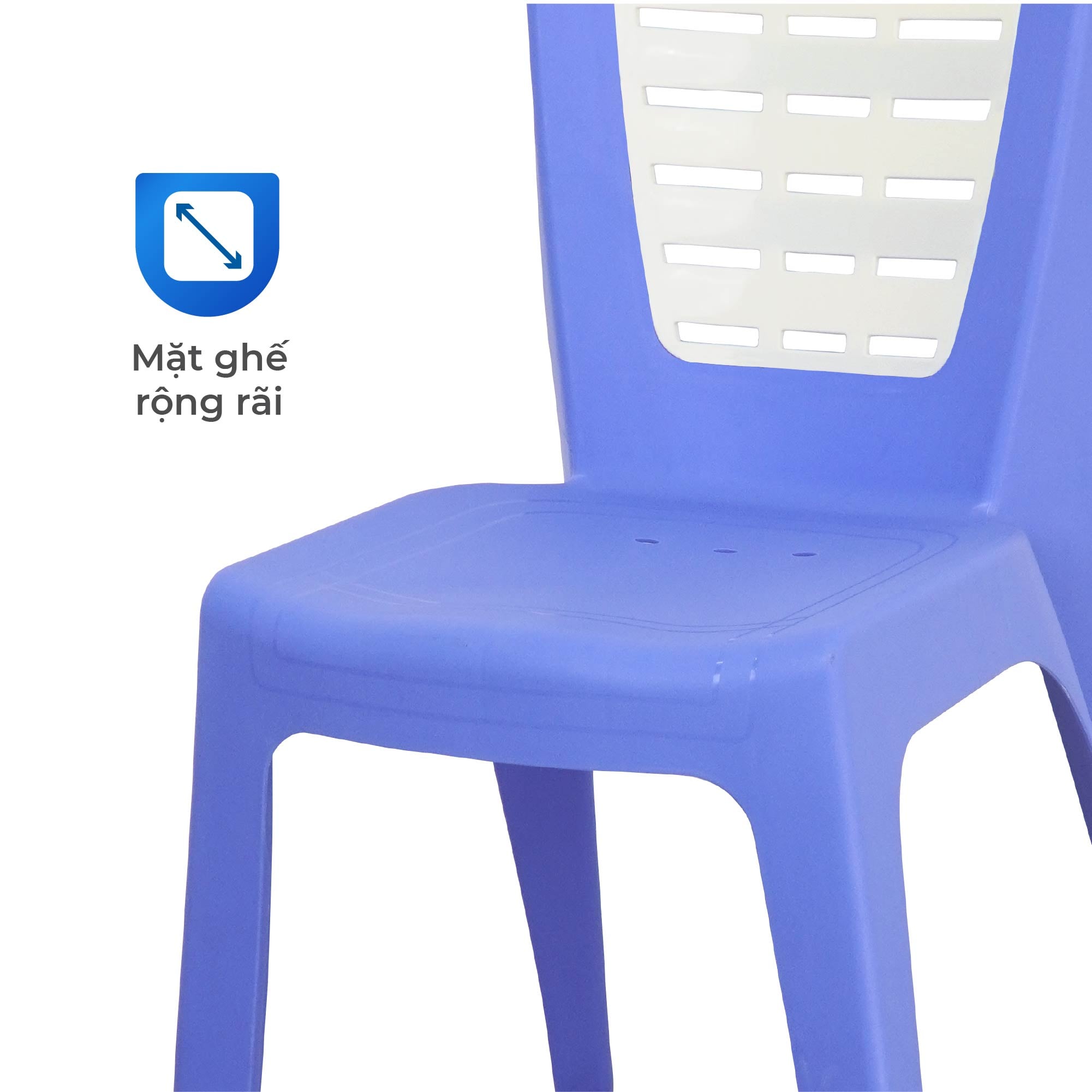 - Lưng tựa có các khe thoáng khí – giúp thoải mái khi ngồi lâu - Bề mặt và viền ghế bo tròn thẩm mỹ, tránh trầy xước tay chân khi cầm nắm - Ghế nhựa cao cấp phối màu sang trọng – tăng tính hiện đại cho không gian - Chất liệu nhựa dẻo bền, có phụ gia chống tia UV – giúp bền màu ngoài trời - Nút chân chống trượt – giữ thăng bằng tốt trên nhiều loại sàn