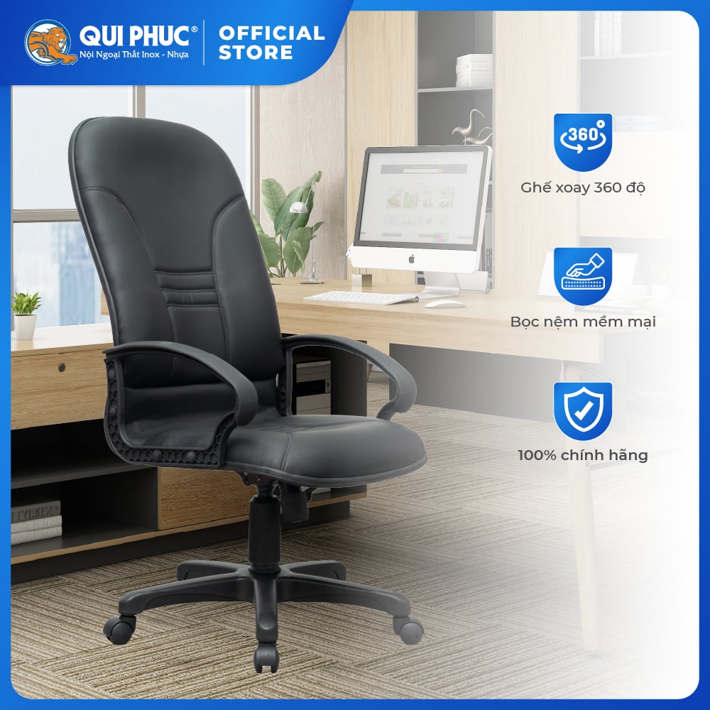 Ghế văn phòng cao cấp Qui Phúc với lớp nệm dày êm ái, sản phẩm khắc phục hoàn toàn cảm giác ê mông, tê chân khi ngồi lâu. Thiết kế tựa lưng cao và ôm sát lưng giúp giảm áp lực lên cột sống, nâng đỡ toàn bộ phần lưng vai gáy một cách khoa học.
