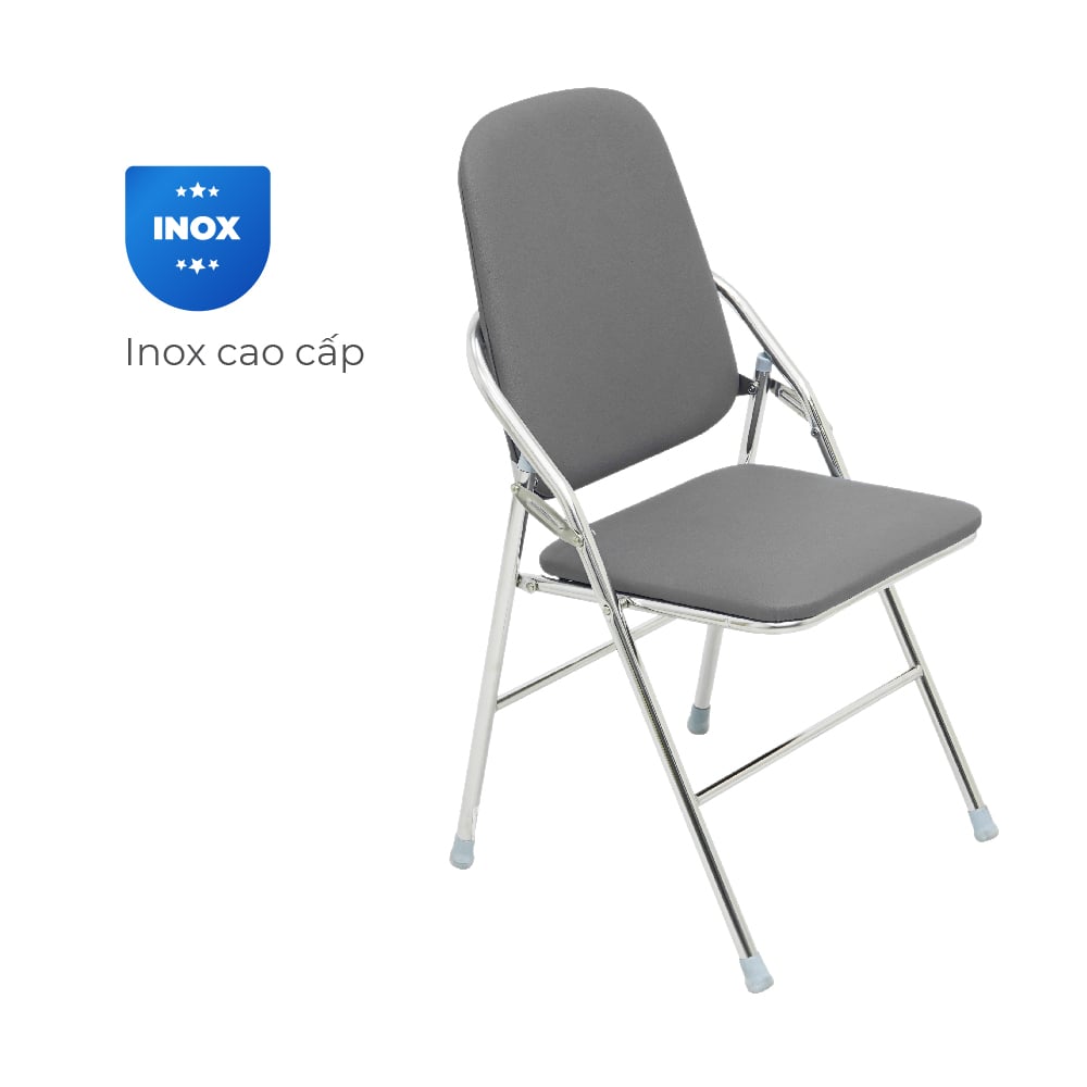 Ghế thiết kế lưng lật linh hoạt cho phép gấp gọn dễ dàng, tiết kiệm tối đa diện tích lưu trữ và thuận tiện di chuyển. Được làm từ khung inox chống gỉ sáng bóng, chịu lực tốt, khắc phục tình trạng ghế kém bền, nhanh xuống cấp. Mặt ngồi và tựa lưng bọc nệm dày êm ái, giúp ngồi lâu không còn lo đau lưng, mỏi cổ.