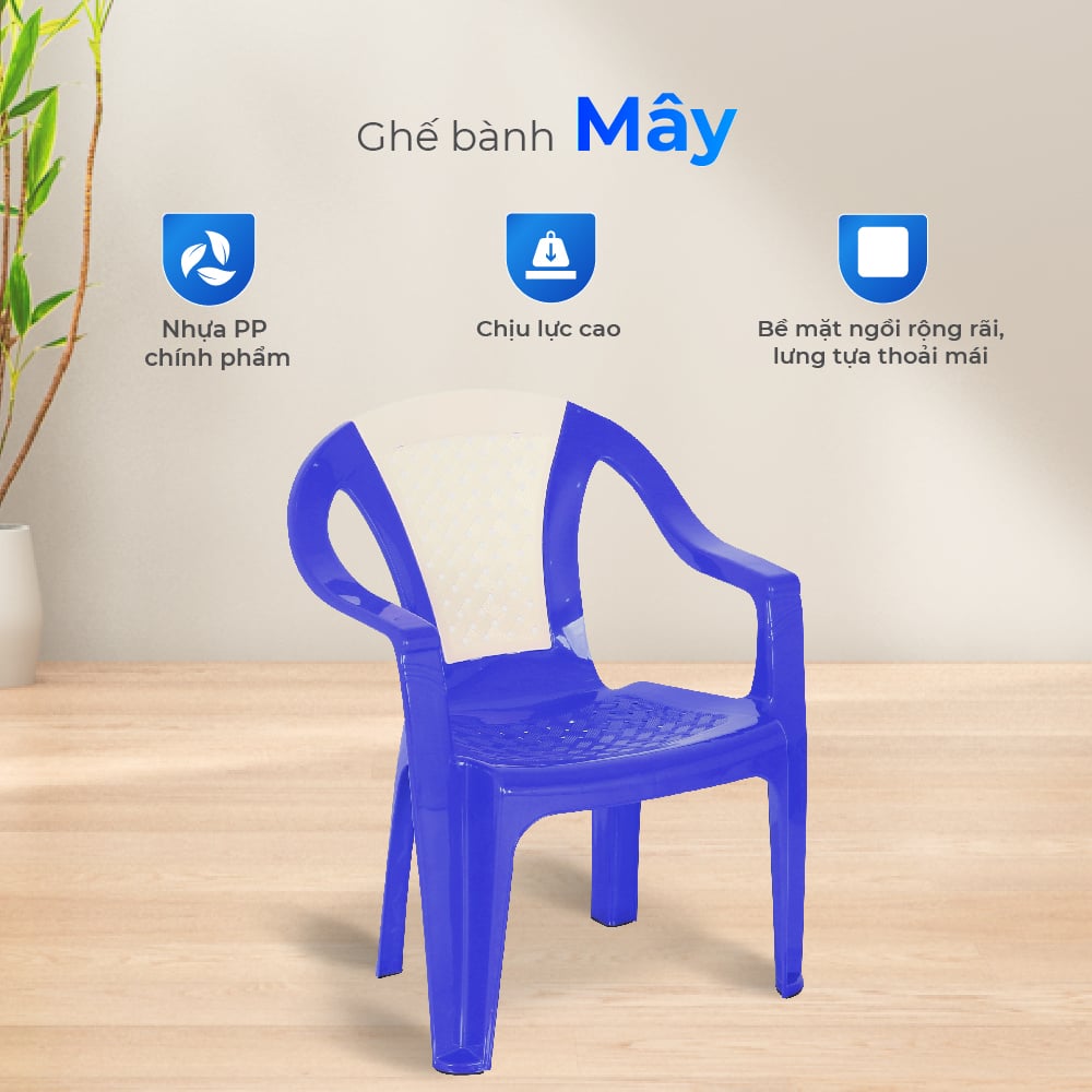 Ghế bành mây được làm từ nhựa PP chính phẩm cao cấp, bền màu và chịu lực tốt, khắc phục triệt để tình trạng nhựa giòn dễ gãy chân gây mất an toàn. Thiết kế lưng ghế họa tiết đan mây thoáng khí giúp ngồi lâu không bị nóng lưng. Cấu trúc nguyên khối chắc chắn, mặt ghế có lỗ thoát nước chống đọng, giữ ghế luôn khô ráo và dễ vệ sinh, phù hợp sử dụng trong nhà lẫn ngoài trời.
