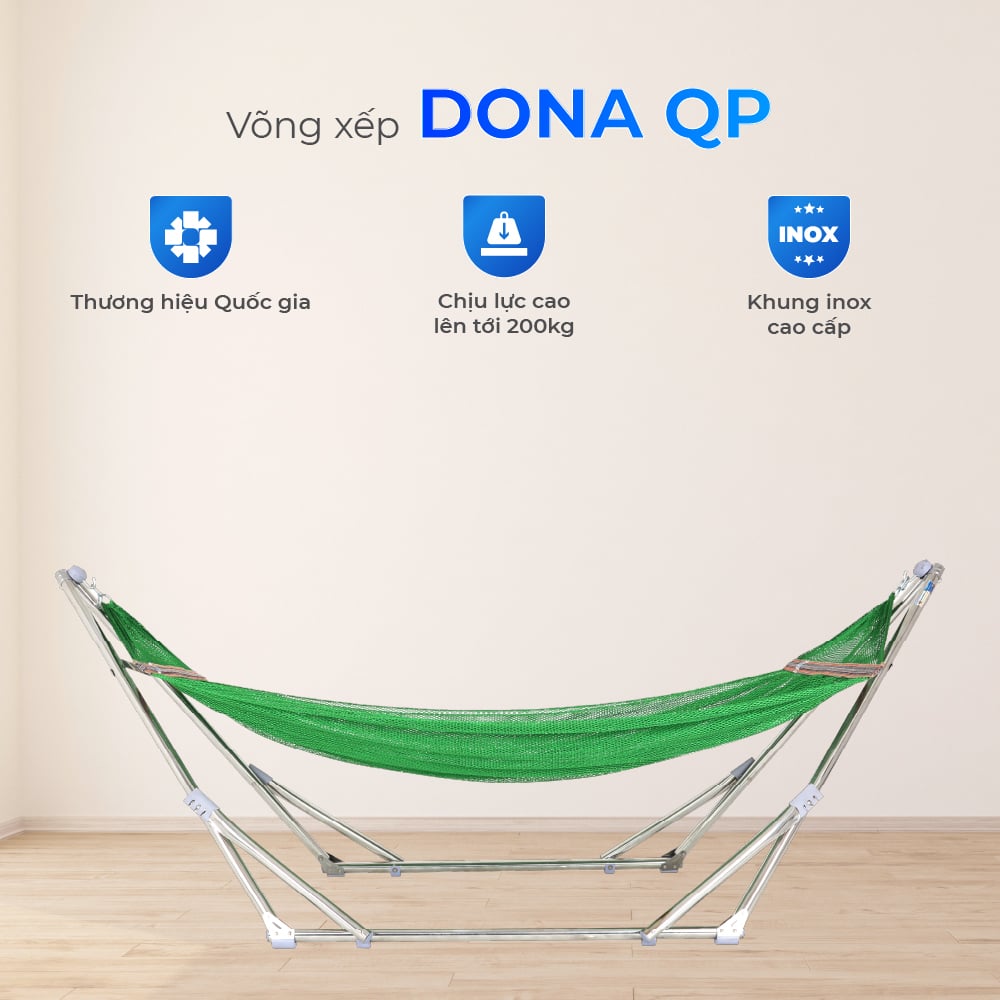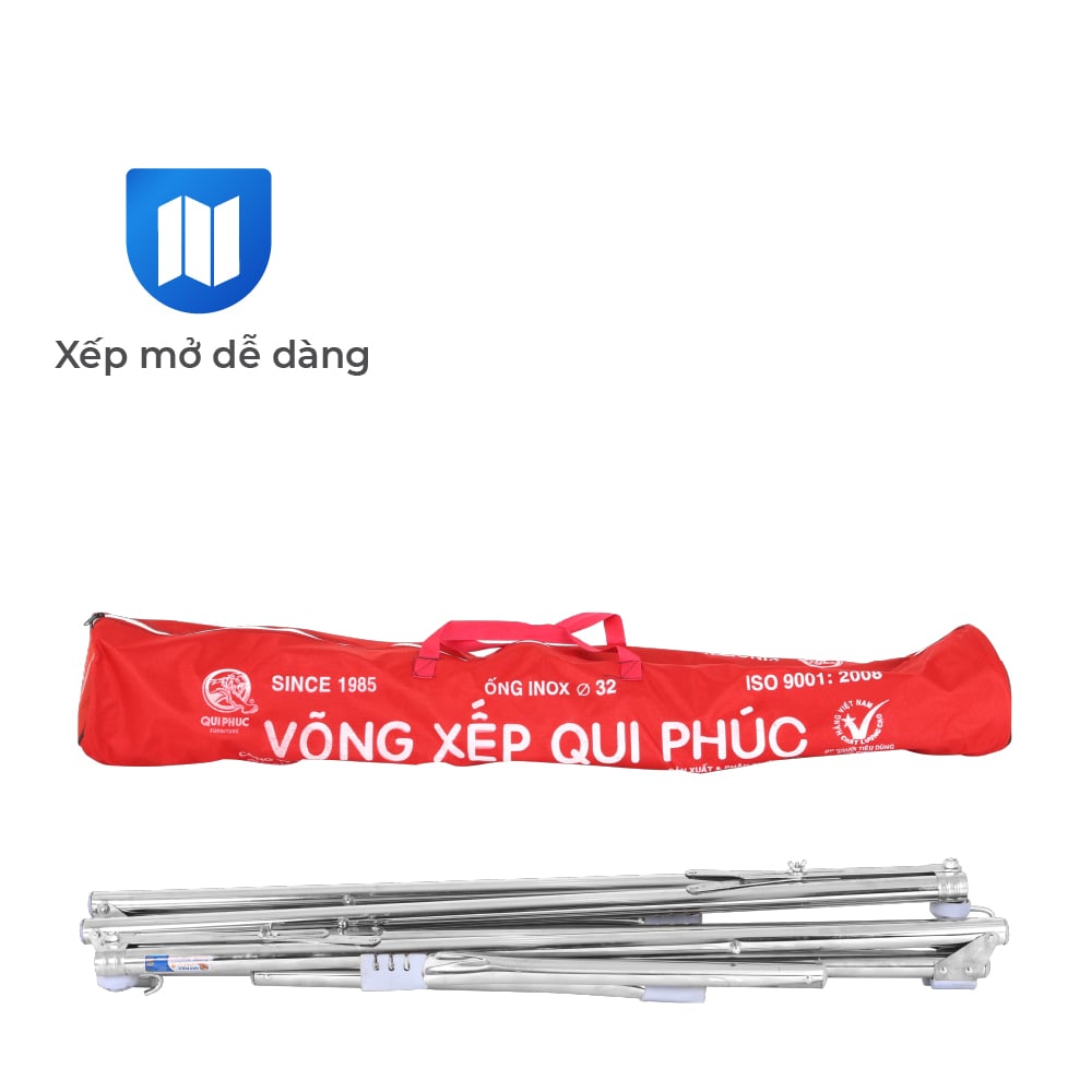 Võng xếp inox DONA QP túi phi 32 được chế tạo từ inox 201 phi 32 dày dặn, sáng bóng và chống gỉ sét hiệu quả, mang lại độ bền vượt trội và vẻ sang trọng cho không gian. Cấu trúc khung chắc chắn, chịu tải lên đến 150kg giúp khắc phục nỗi lo võng rung lắc, kêu cót két hay khó gấp mở, mang đến trải nghiệm thư giãn êm ái, an toàn cho cả người lớn lẫn trẻ nhỏ.